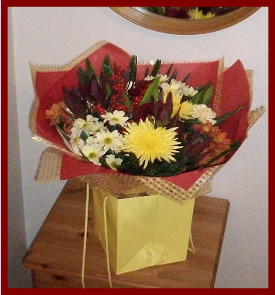 The arrangement thankfully included no lilies which are so toxic to asthmatics so I have been able to keep them in the house where they are giving much pleasure.